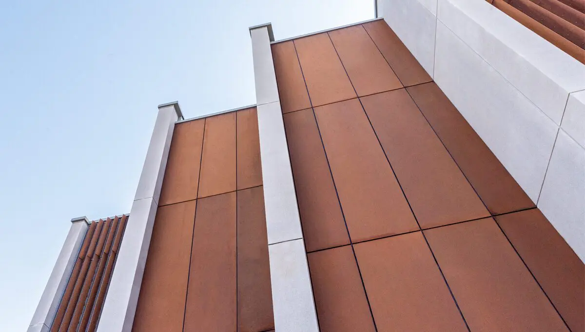 Main works comprised of corten steel rainscreen panelling systems and feature fin detailing.