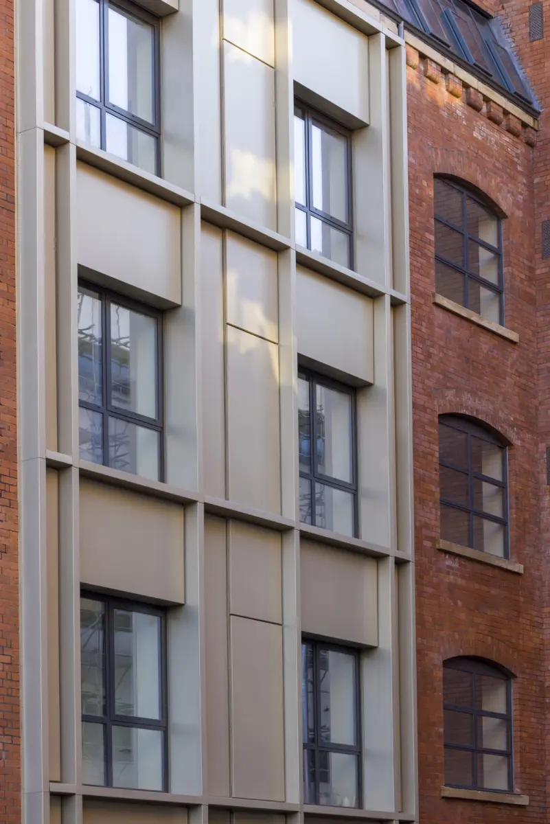 Main works comprised of built up felt roofing, bespoke aluminium rainscreen façade with feature fin detailing and architectural aluminium works.